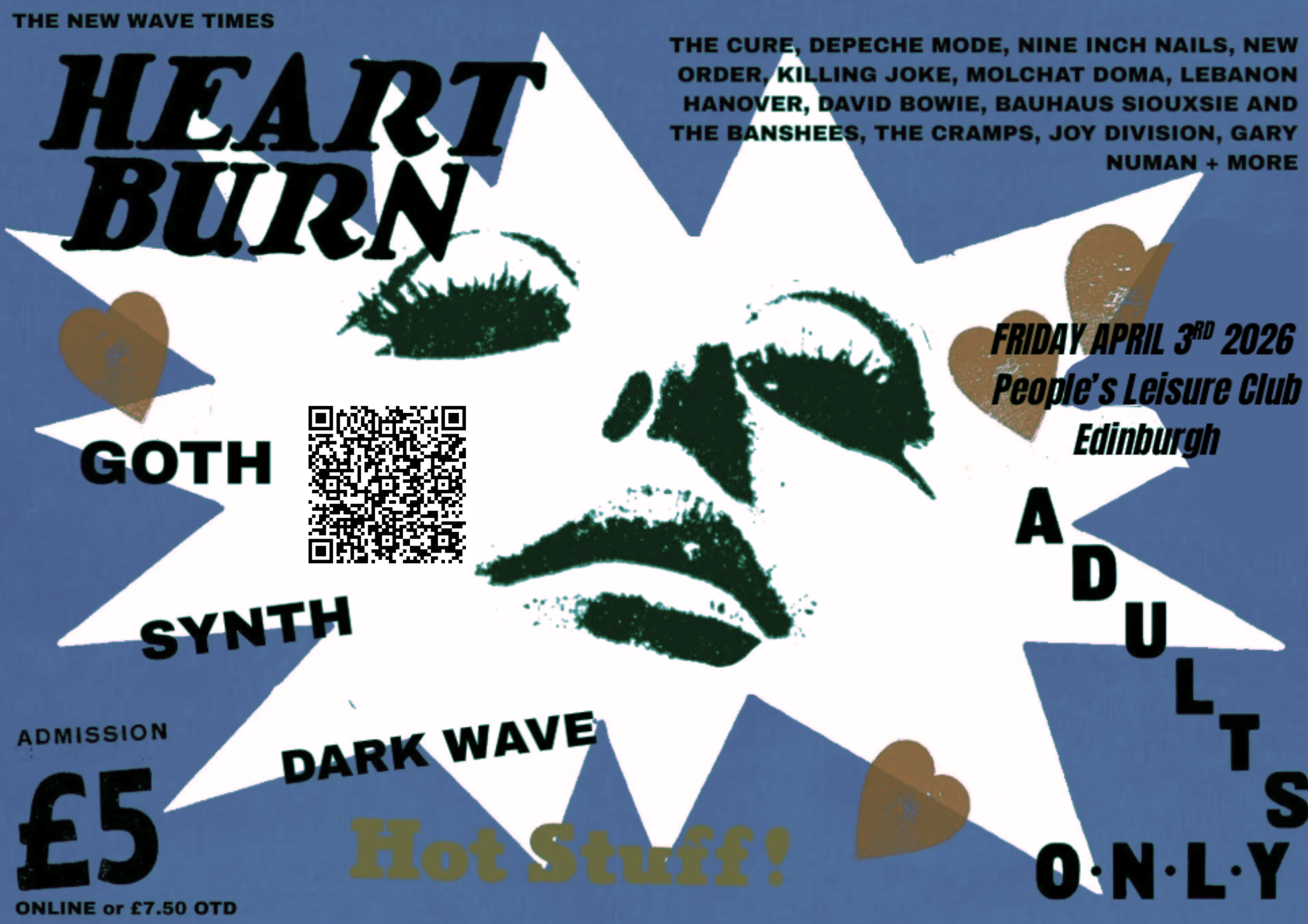 After a phenomenal sell-out in January, we’re back with yet another tantalising night of tunes and terror. Post-Punk, Darkwave, New-wave, Gothic and beyond - we call the young and old to dance under the masqeurade at the People’s Leisure Club in Edinburgh